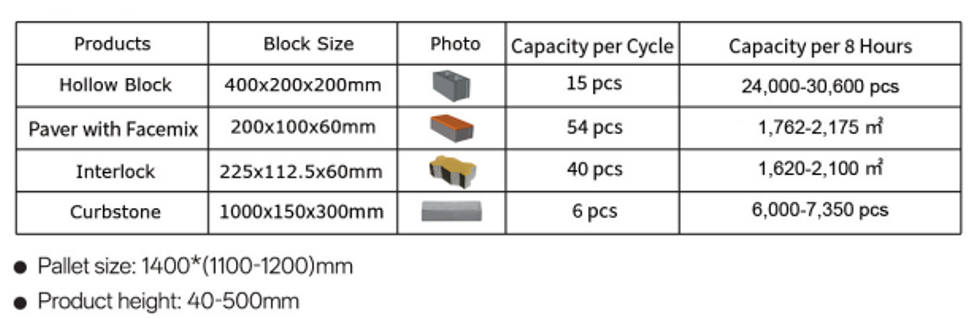 Makina apamwamba a njerwawa amaphatikiza makina osinthika a servo vibration kuti atsimikizire kukhazikika bwino komanso kusasunthika kwa block. Kugwedezeka kwamphamvu kwamphamvu kumawongolera kwambiri mphamvu ndi mawonekedwe apamwamba a midadada yomalizidwa ya konkriti, ndikupangitsa kuti ikhale yabwino pazomera zazikulu zopanga midadada.